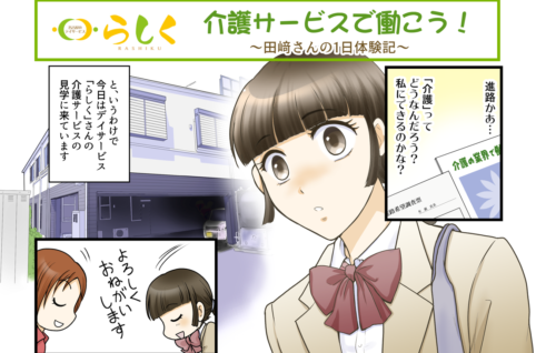 デイサービスの施設を運営されているビーネット様!今回は高校生向けに、1日のスケジュールを中心とした業務の説明や、他とは違う「介護」のやり方ややりがいを中心にマンガ制作致しました!