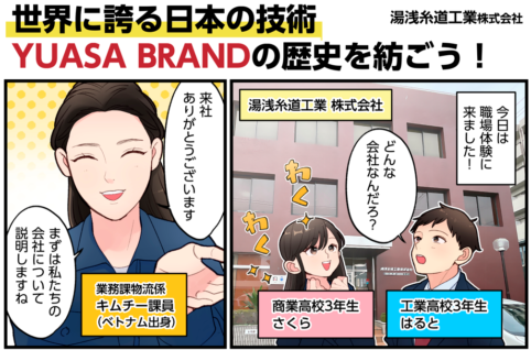 遷移機械内で糸が走る道となるガイド部品「糸道」を開発・製造・販売を行っている湯浅糸道工業様!今回は製造スタッフを工業系の高校生、事務スタッフを商業系の高校生にスポットをあてて、業務の内容やキャリアアッ...